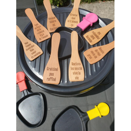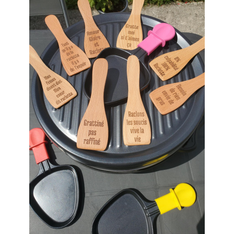 Ajoutez une touche unique à vos soirées raclette avec nos spatules en bois personnalisées, gravées avec soin dans notre atelier.