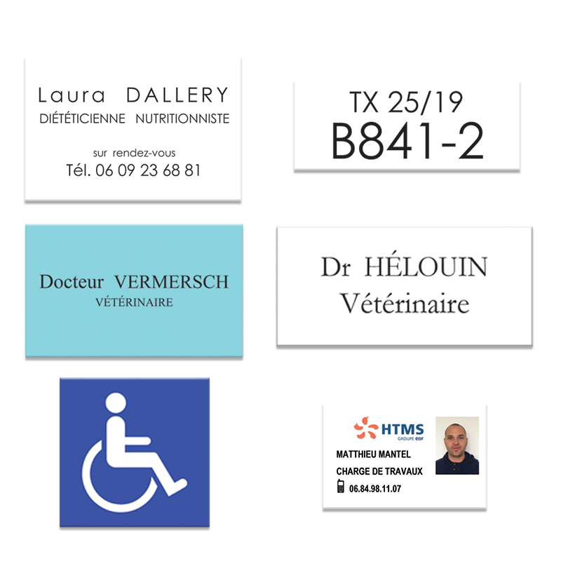 - Format (sur mesure, 8 x 5 cm, 20 x 30 cm profession libérale)
