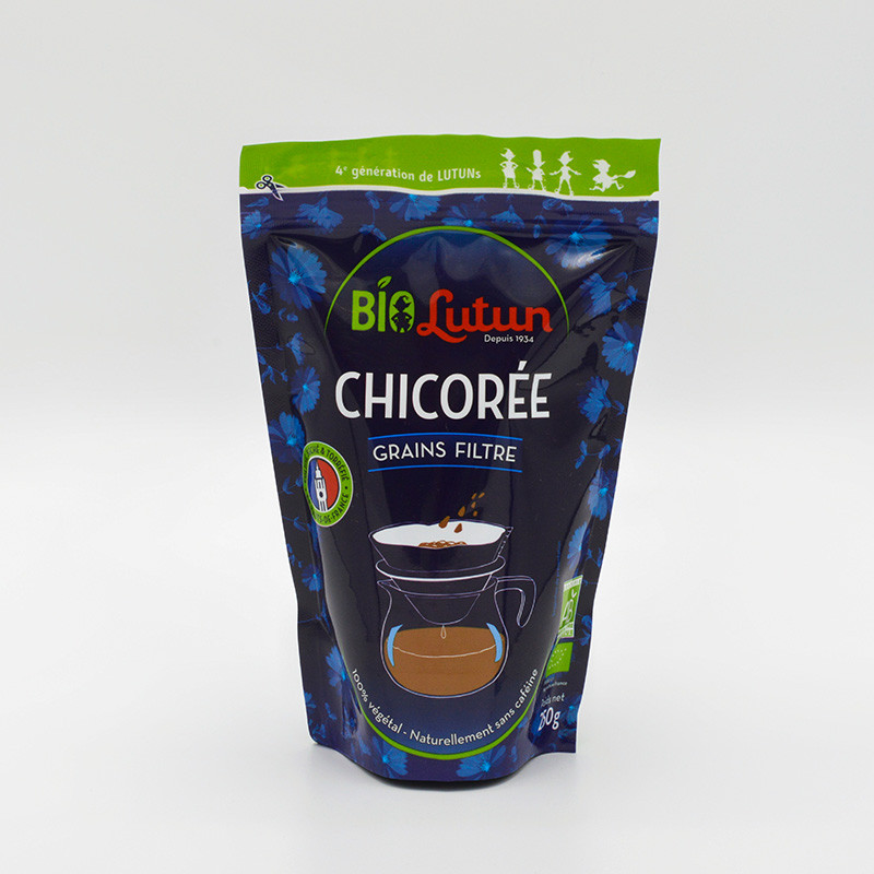 100% chicorée BIO tracée Hauts de France. Torréfiée à Oye-Plage. Doypack recyclable de 250 g