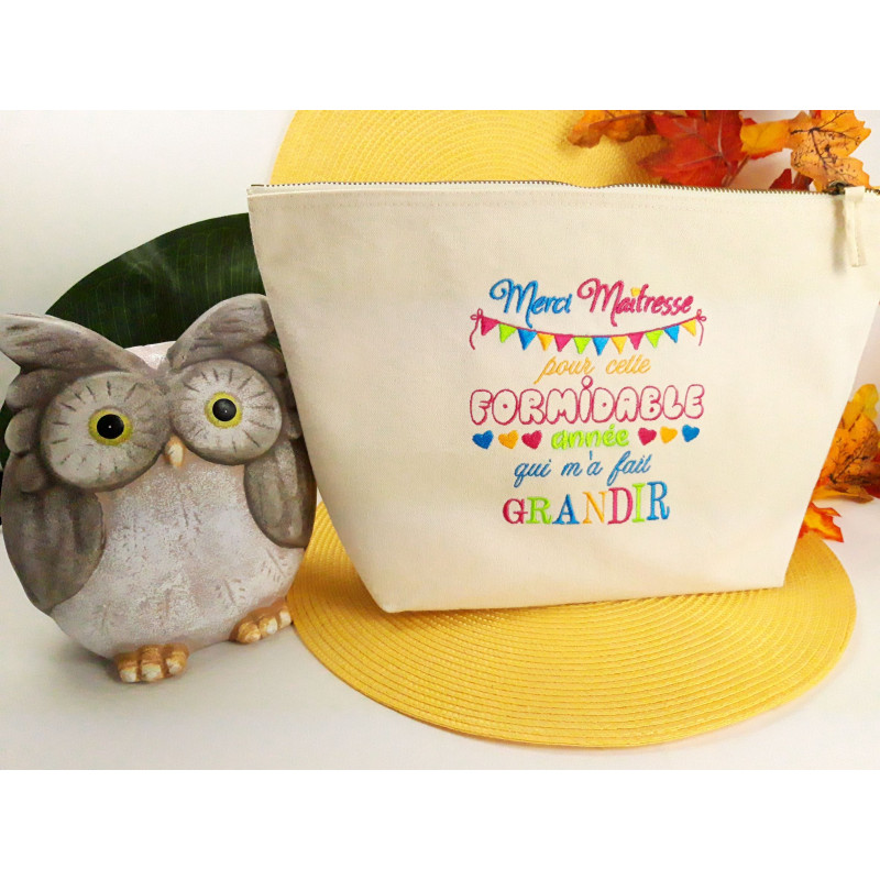 Motif brodé : "Merci Maîtresse pour cette formidable année qui m'a fait grandir"