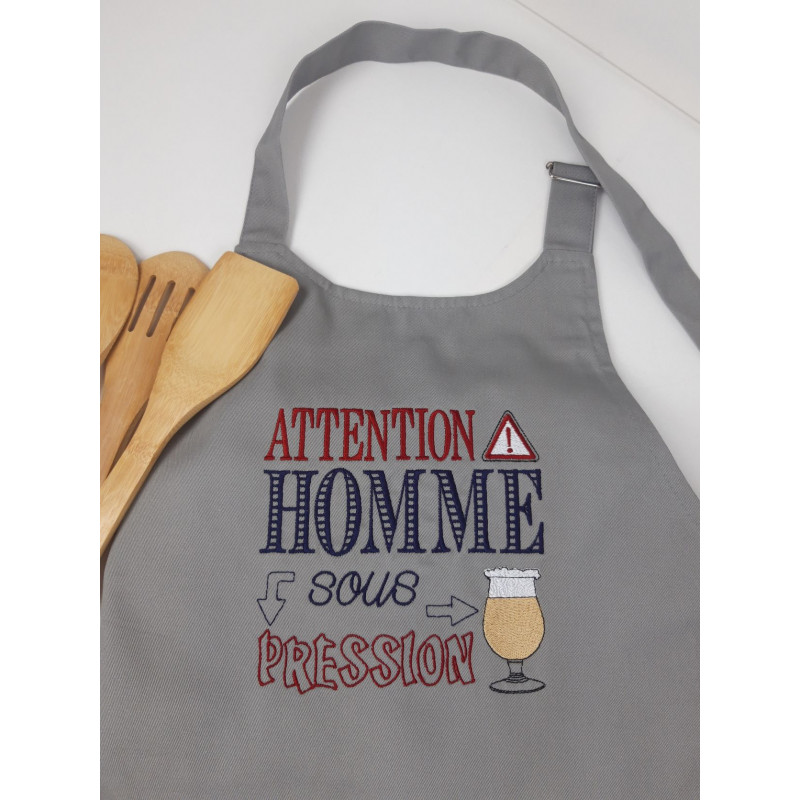 Motif brodé "ATTENTION HOMME SOUS PRESSION"