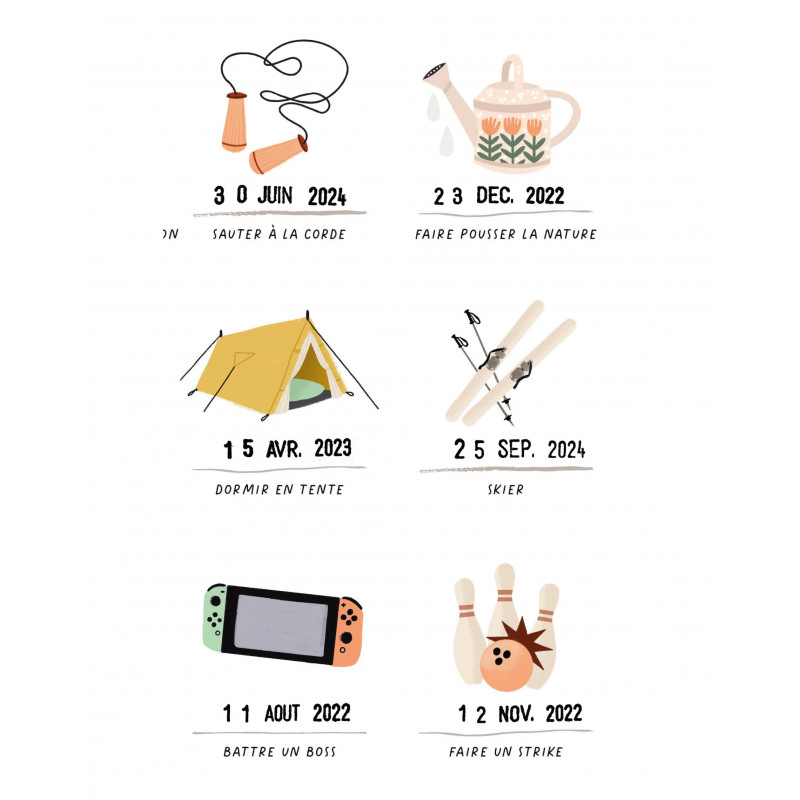 Parce qu’il n’y a pas de petites victoires, 56 évènements marquants à dater : moi je sais écrire, moi je sais reconnaître une constellation, moi je sais faire un gâteau, moi je sais faire un strike, moi je sais nager, moi je sais compter jusqu’à 100...