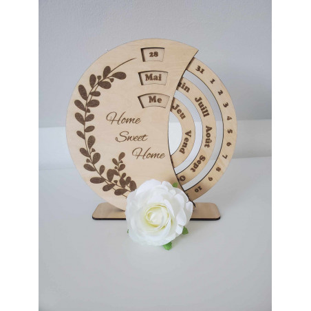 Apportez une touche de douceur et d’authenticité à votre intérieur avec ce calendrier perpétuel en bois, entièrement conçu et gravé dans notre atelier.