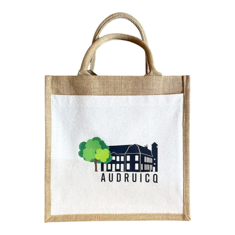 Cabas en toile de jute et coton, imprimé avec notre logo "Audruicq".