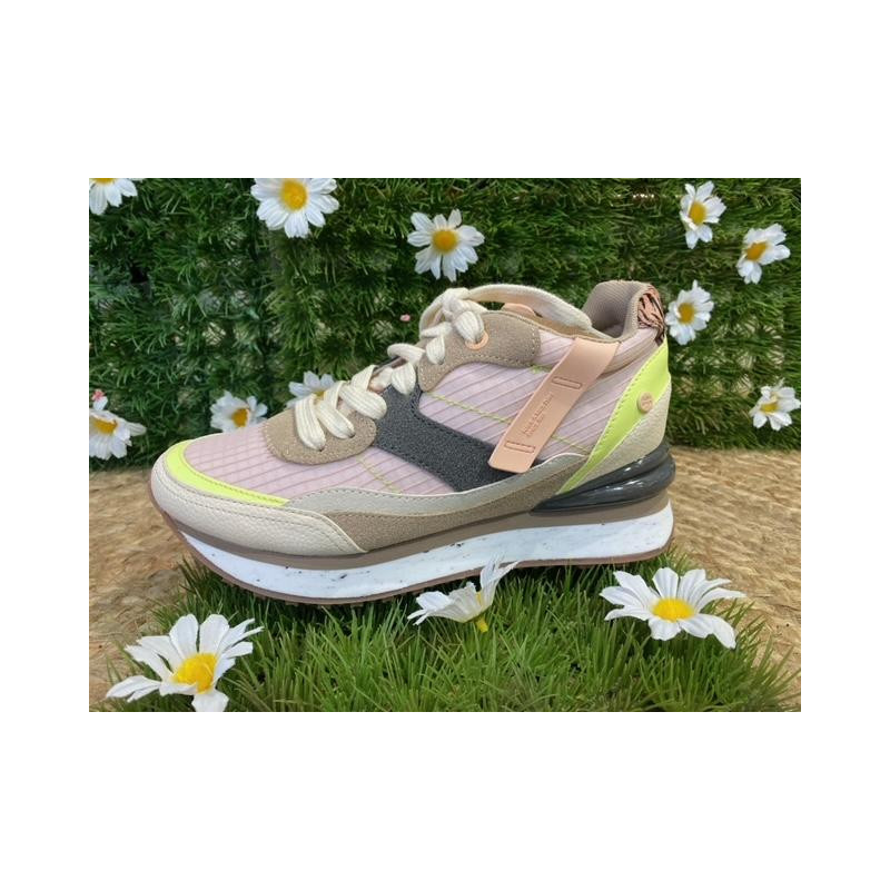 Basket multicolore dominante rose compensée fluo a l'avant et arrière