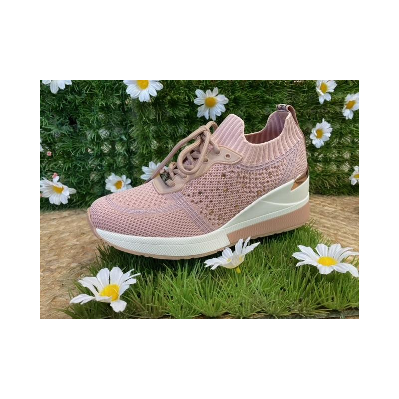Basket à lancer en toile rose haut compenser avec faux lasser sur le dessus