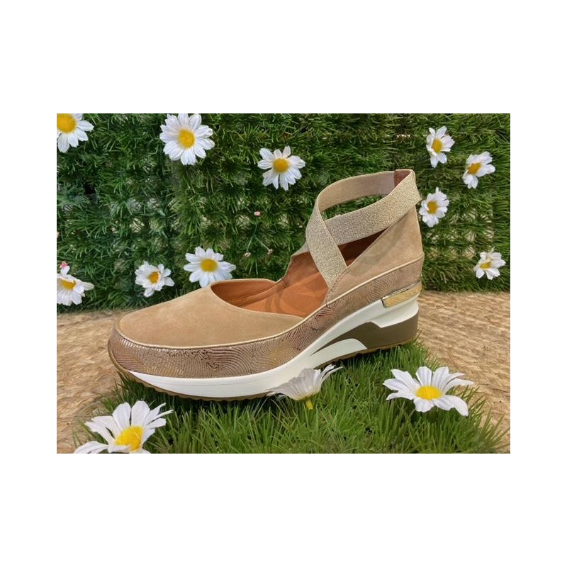 Ballerine beige à lancer élastique à la cheville semelle compenser