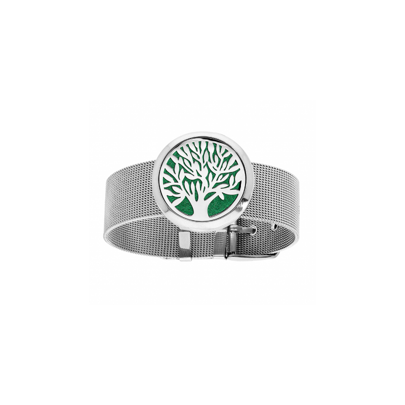 Bracelet à parfumer en acier , maille milanaise avec médaillon arbre de vie