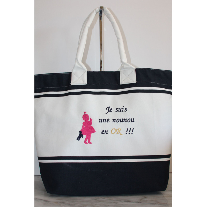 Broderie : "Je suis une nounou en Or" + motif "petite fille et son doudou"