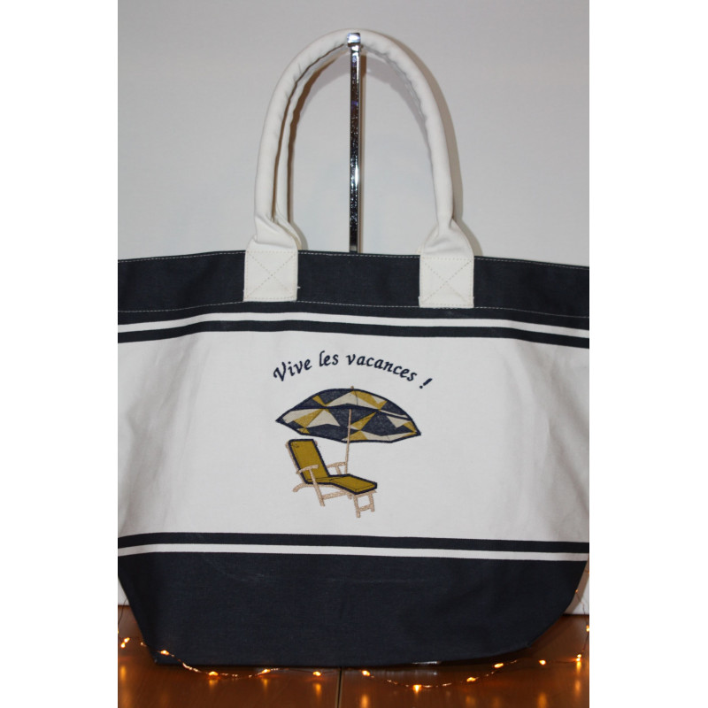 Broderie : "Vive les vacances" + motif "Transat et parasol"