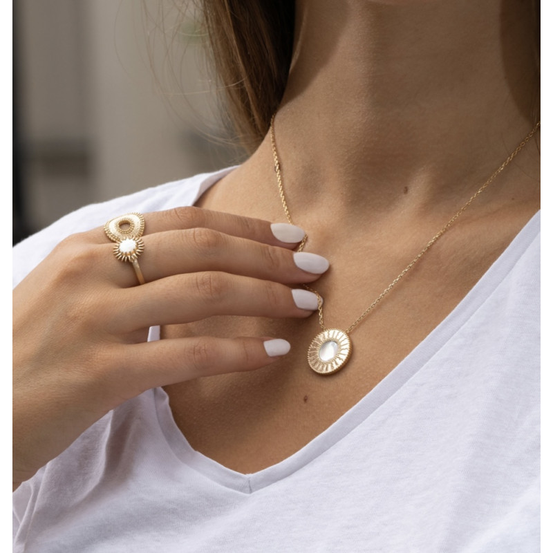 La collection Pauline nous offre des bijoux solaires aux inspirations art déco. On craque pour son collier qui réveillera aussi bien vos tenues du quotidien que celles de grandes occasions