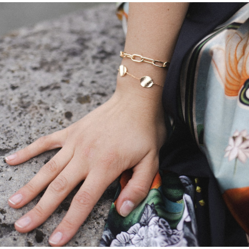 Hyper tendance, la ligne Marine nous offre des bijoux épurés aux jolis détails torsadés. Amusez-vous à accumuler avec le bracelet Marinette!