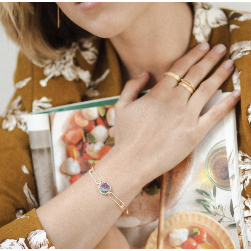 On craque pour le bracelet Kiara, son or miroitant et sa touche de couleur acidulée ! Un vrai shoot vitaminé