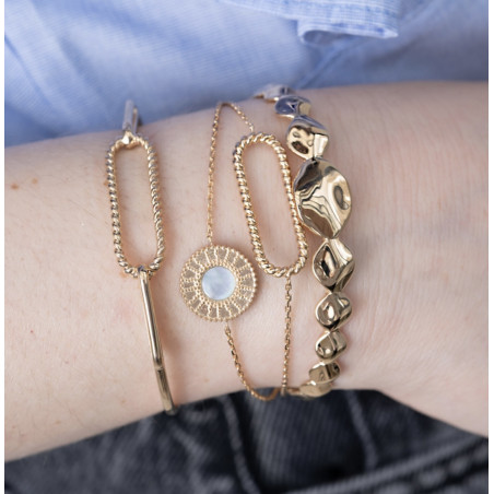 La collection Pauline nous offre des bijoux solaires aux inspirations art déco. On craque pour son bracelet qui réveillera aussi bien vos tenues du quotidien que celles de grandes occasions.