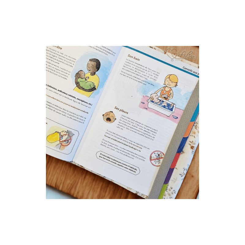 Fait main en France, il protège le carnet de bébé tout en apportant une touche douce et élégante. Deux poches intérieures permettent de ranger carte vitale et mutuelle, et un élastique assorti maintient l’ensemble bien fermé.